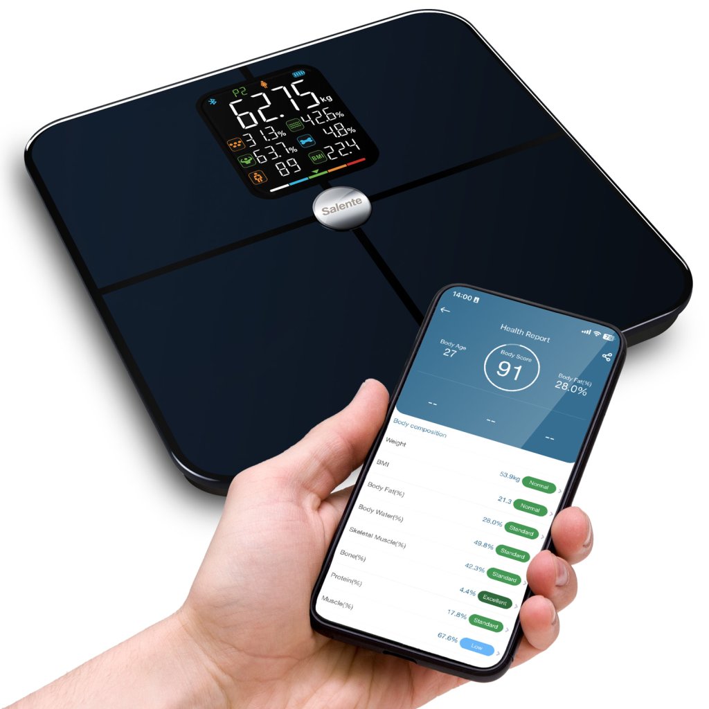 Egy olyan korban, amikor már a hűtőszekrény is képes beszélni a mobiltelefonjával, az intelligens mérleg sem maradhat le. A Salente BodyFit Bluetooth-on keresztül csatlakozik az okostelefonjához, és minden mért adatot elküld a MovingLife mobilalkalmazásba. Ott aztán megtekintheti a mérlegelési előzményeket, figyelemmel kísérheti az értékek időbeli alakulását, vagy saját célokat tűzhet ki. Az alkalmazásban jól látható, hogy még ha a súly néha csak néhány tizeddel mozog is, a test fáradhatatlanul dolgozik és lassan változik. A modern technológia rajongói számára ez egy nagyszerű kütyü, amelynek köszönhetően a fitnesznaplója mindig a zsebében lehet.