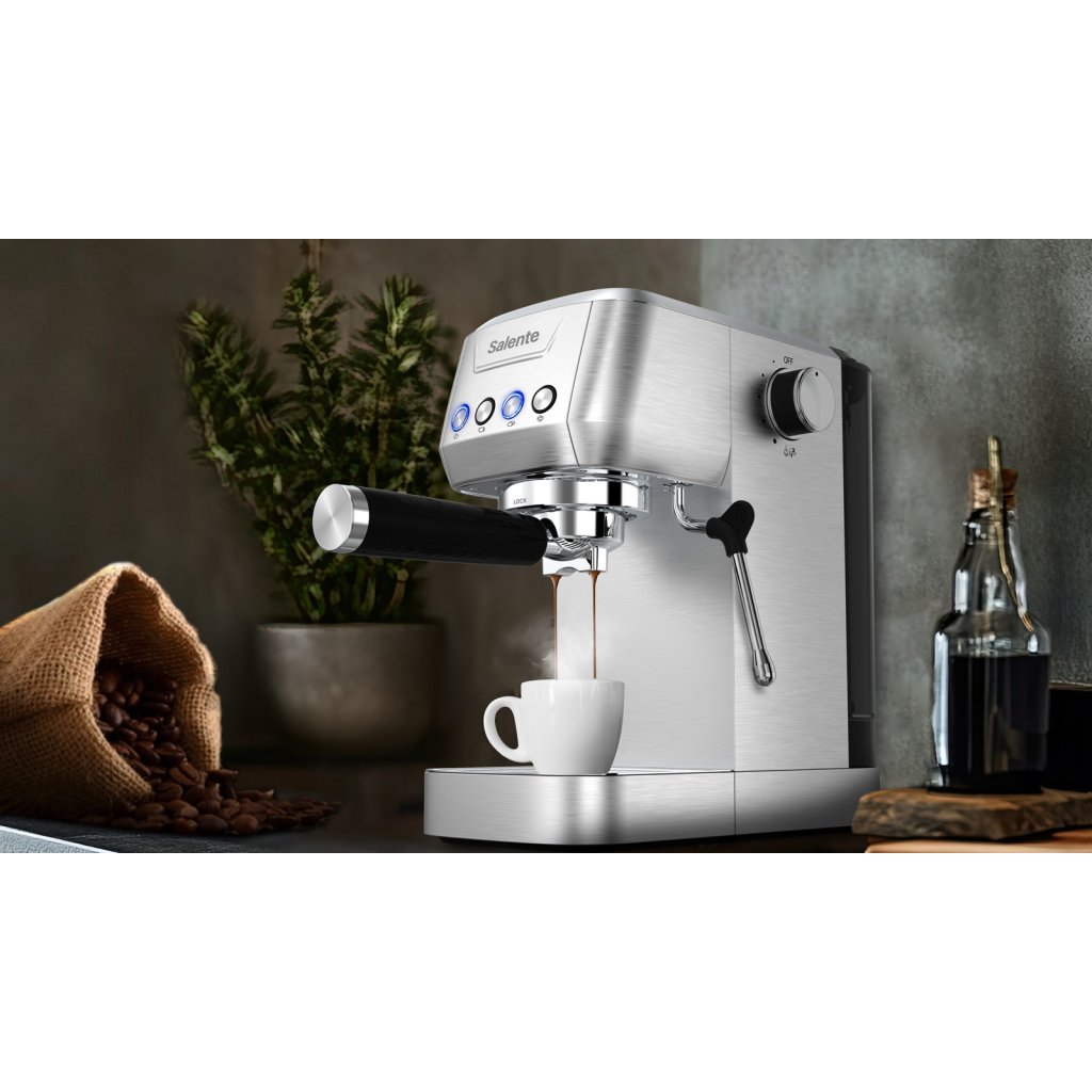 A Salente márka, amelyet az elbűvölő olasz régió ihletett, egy csúcsminőségű karos kávéfőzőt hoz el konyhájába, amely otthonában igazi olasz kávézó hangulatát teremti meg. Az olaszok nagyon jól tudják, hogy egy remek kávé fontos rituálé, amely minden hétköznap reggelt kellemes élménnyé varázsolhat. És éppen ezért itt van a Salente Coffio – egy elegáns készülék, amellyel könnyedén elkészítheti kedvenc kávéját. Pontosan az elképzeléseinek megfelelően, otthona kényelmében és felesleges gondok nélkül.