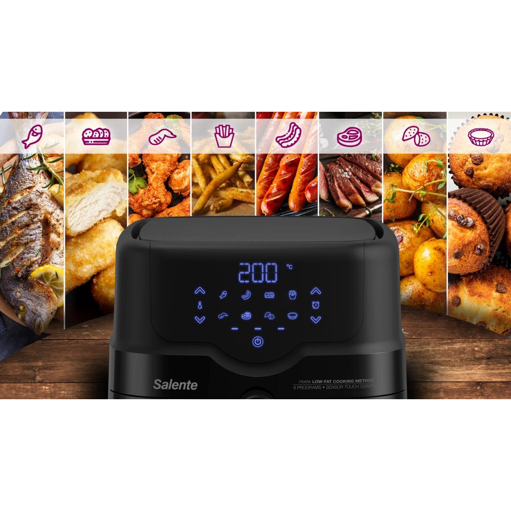 A Salente HotAir forrólevegős fritőz megfelel az egészséges és gyors ételkészítésre vonatkozó mai legmagasabb követelményeknek, és két főzési módszer - a sütés és a grillezés - kombinációját kínálja. Még a legigényesebb szakácsok és séfek számára is lehetővé teszi a hőmérséklet beállítását 80-200 °C között 5 °C-os lépésekben, valamint a főzési idő beállítását 1-60 perc között 1 perces lépésekben.