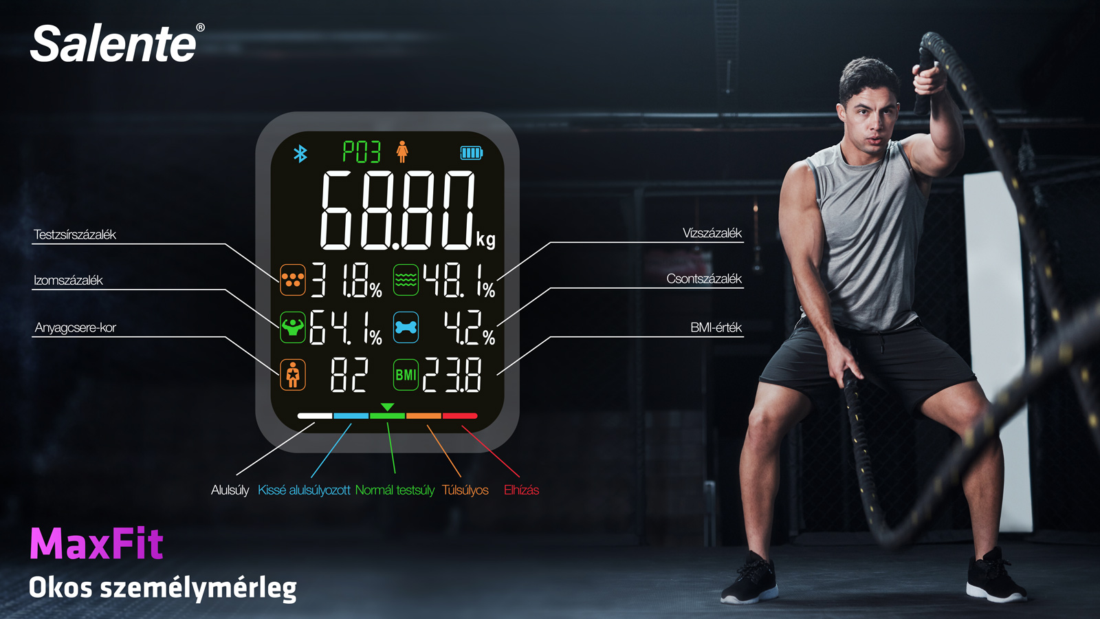 A Salente MaxFit ideális választás mindazok számára, akik modern, intelligens és barátságos módon szeretnék súlyukat és egészségüket ellenőrzés alatt tartani. Nem erőlteti magát, nem szidja Önt, csak türelmesen méri, tárolja és megmutatja, hogy merre mozog. Ha ehhez hozzáadod a saját akaratodat, egy kis testmozgást és ésszerű étrendet, a szokásos reggeli mérlegelés egy kis rituálévá válik, amely segít a helyes úton maradni.