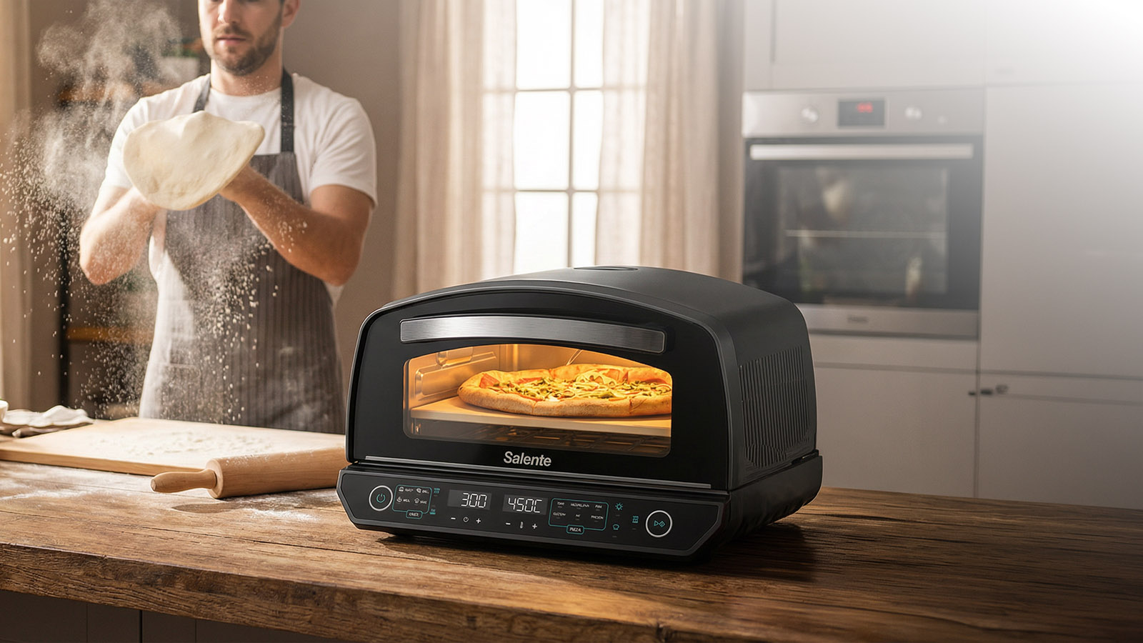 A 450 °C-os hőmérsékletnek köszönhetően ugyanezt a hatást otthon is elérheti – gyorsan, túlszárítás nélkül és olyan hiteles eredménnyel, mint egy olasz fatüzelésű kemencében.